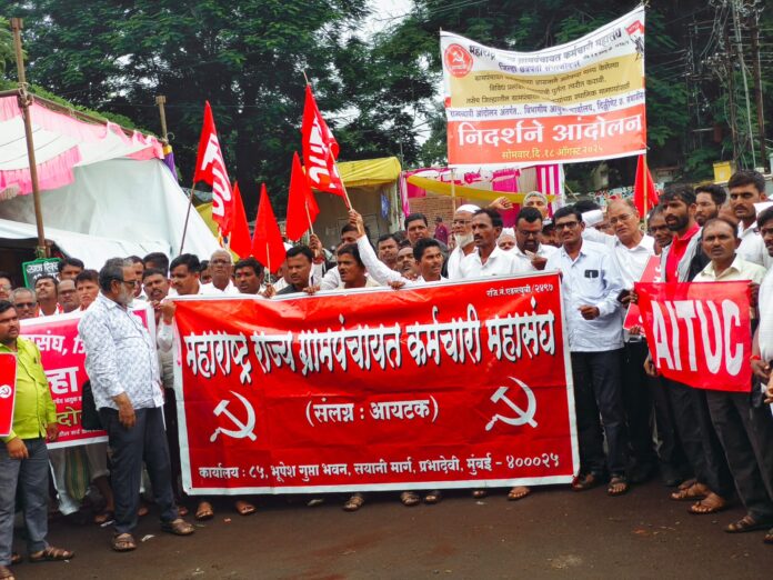 ग्रामपंचायत कर्मचाऱ्यांची आयटक प्रणित मराठवाड्यात जोरदार निदर्शने – यावलकर समितीच्या शिफारशी तातडीने लागू करण्याची मागणी